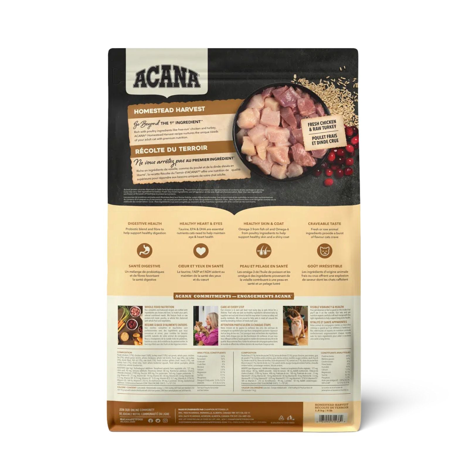 ACANA Homestead Harvest, Hrana Uscata pentru Pisici Adulte, cu Pui si Curcan, 1.8kg / 4.5kg