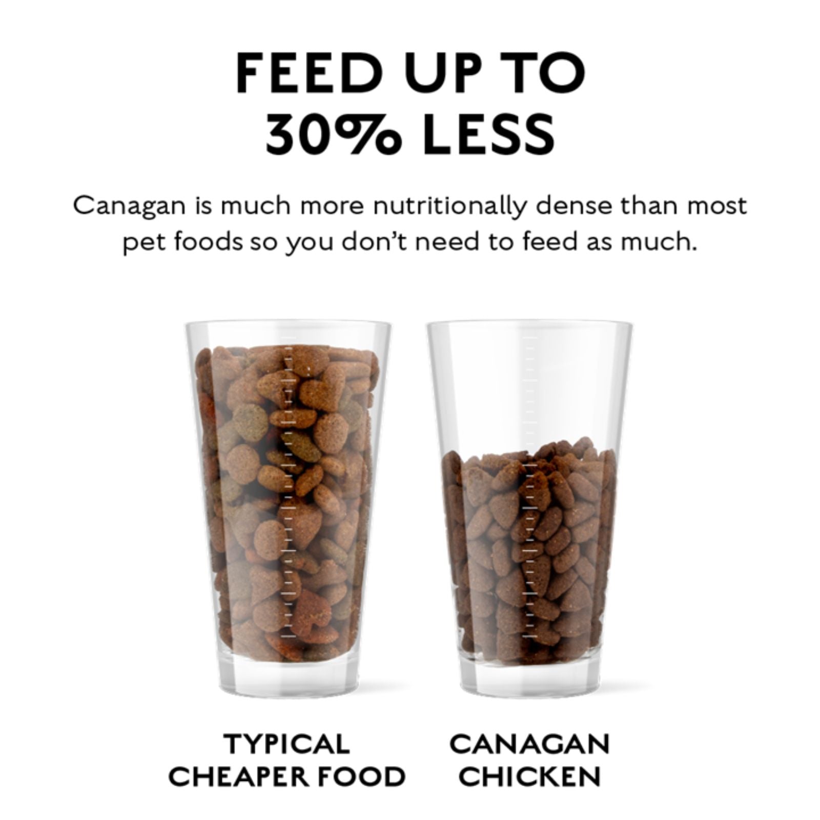 Ingredientul principal este Puiul Free Range proaspăt dezosat, gătit lent pentru a păstra savoarea intactă. Spre deosebire de majoritatea brandurilor, Canagan folosește carne de la pui care au avut acces la pășune, ceea ce se traduce printr-o proteină superioară. Aceasta este combinată cu carne deshidratată pentru o concentrație proteică intensă (32%).