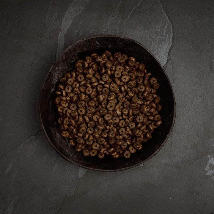 Crochetă Mică (Smaller Kibble): Dimensiunea bobiței este special calibrată pentru maxilarele mici, prevenind înecarea și ajutând la curățarea mecanică a dinților.