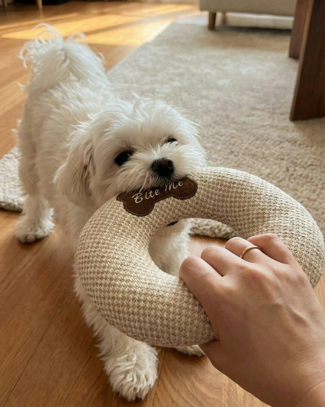 ucăria Enjoy realizată din iută naturală este accesoriul perfect pentru sesiunile intense de joacă interactivă și dresaj. Cu o dimensiune generoasă de 24 x 18 cm, acest tip de „pernă de mușcătură” este conceput pentru a satisface instinctul natural de pradă al câinelui, fiind ideală pentru jocurile de tip „trage-și-lasă” (tug-of-war).