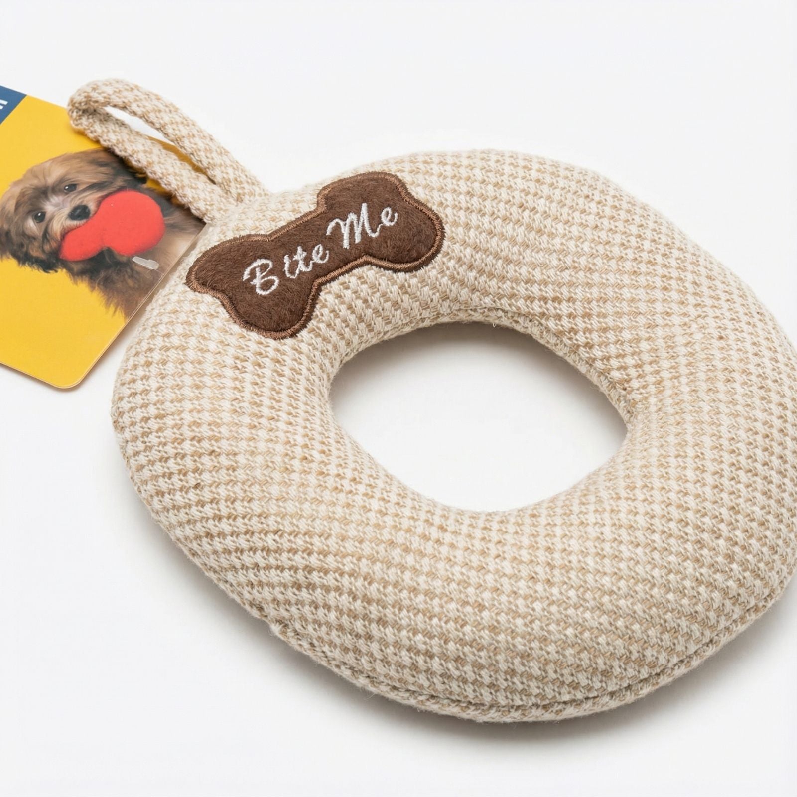 Jucarie pentru Caini Enjoy din Iuta, Perna de Muscatura Rezistenta cu Piuitoare, 24 x 18 cm
