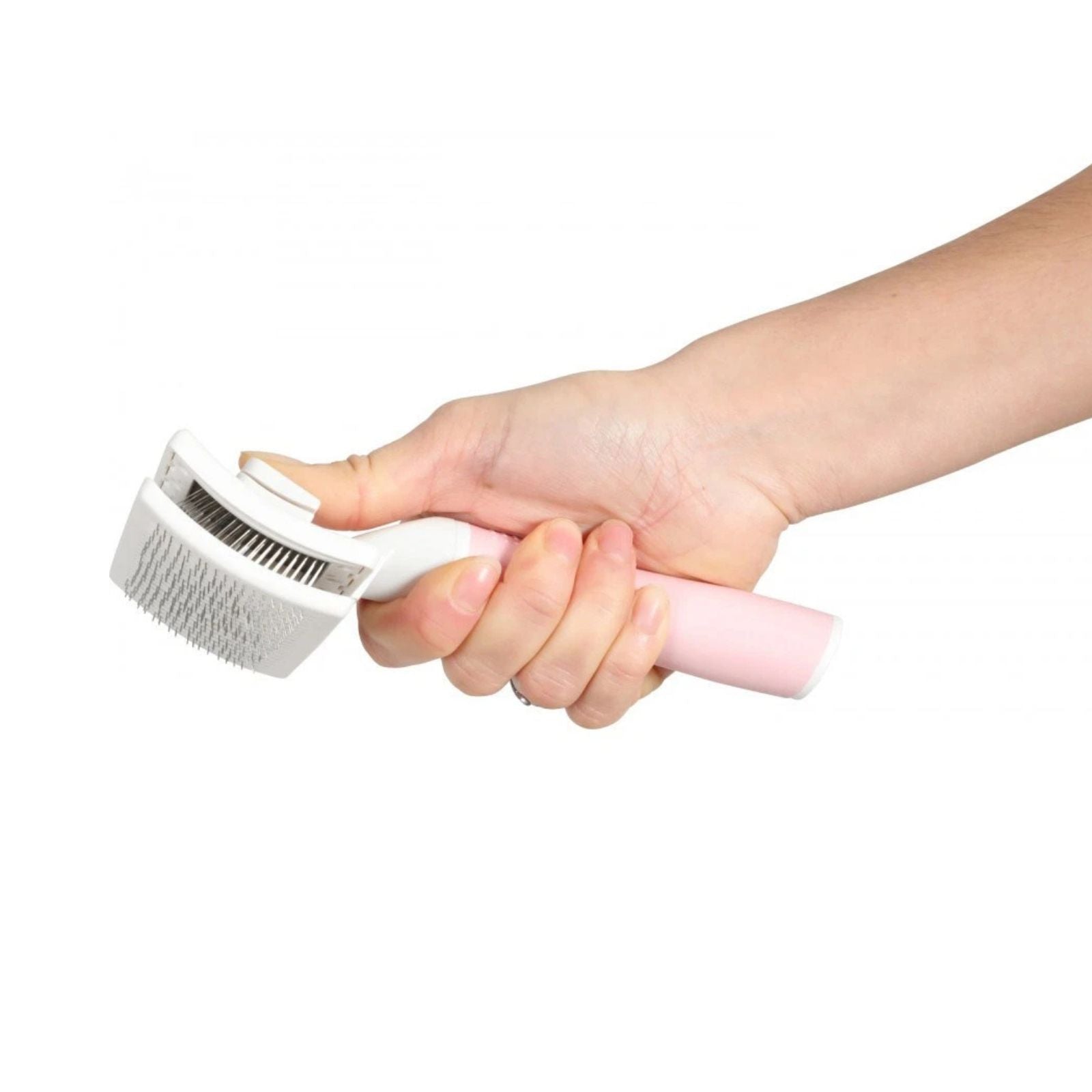Această perie este esențială pentru întreținerea blănii, având peri fini din oțel inoxidabil care pătrund adânc în blană, eliminând eficient subpărul mort și descurcând micile noduri, fără a tăia firul de păr.