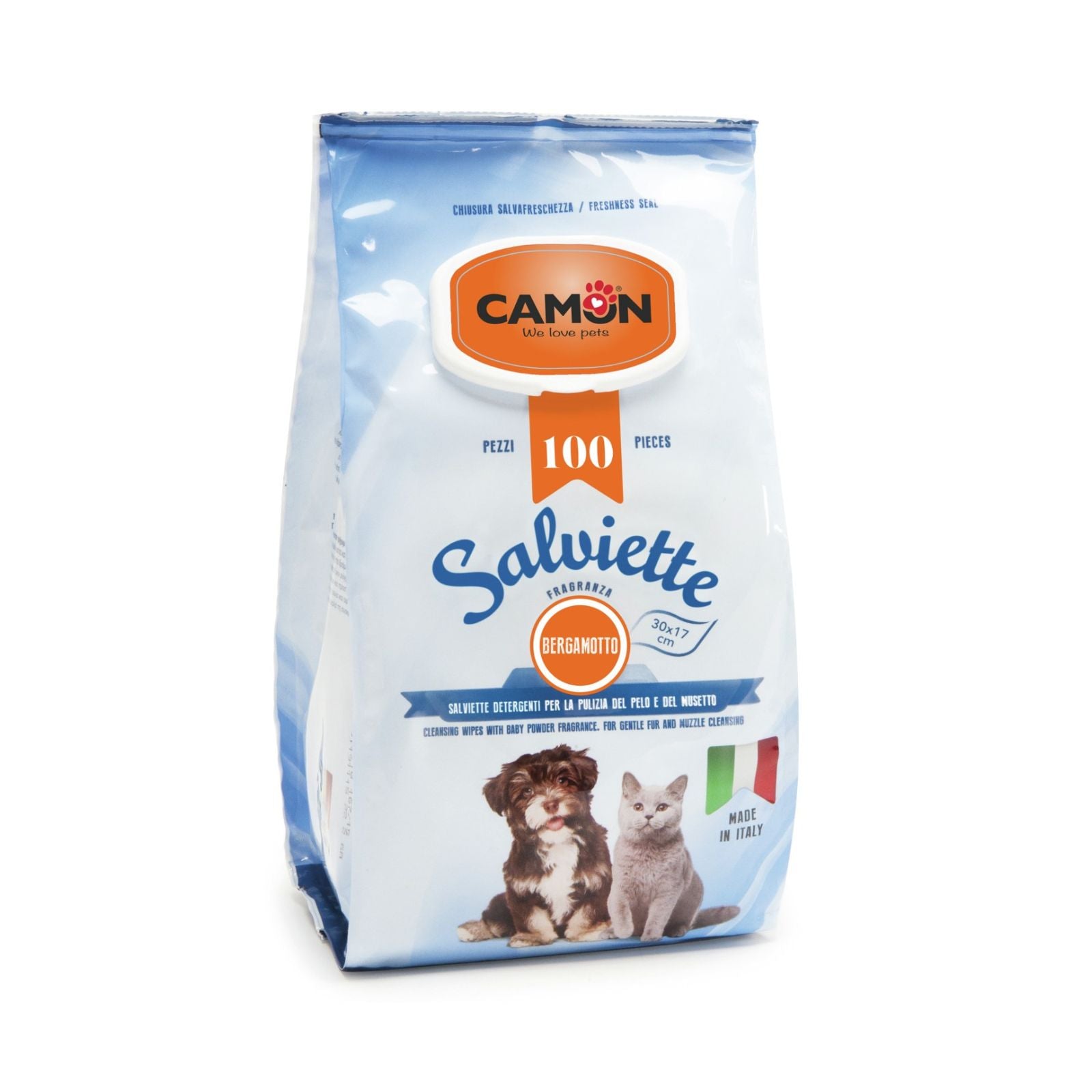 Menține igiena și prospețimea câinelui sau pisicii tale oriunde te-ai afla! Șervețelele umede Camon sunt soluția ideală pentru curățarea rapidă a lăbuțelor, blănii, botului și urechilor, fără a avea nevoie de apă și săpun.