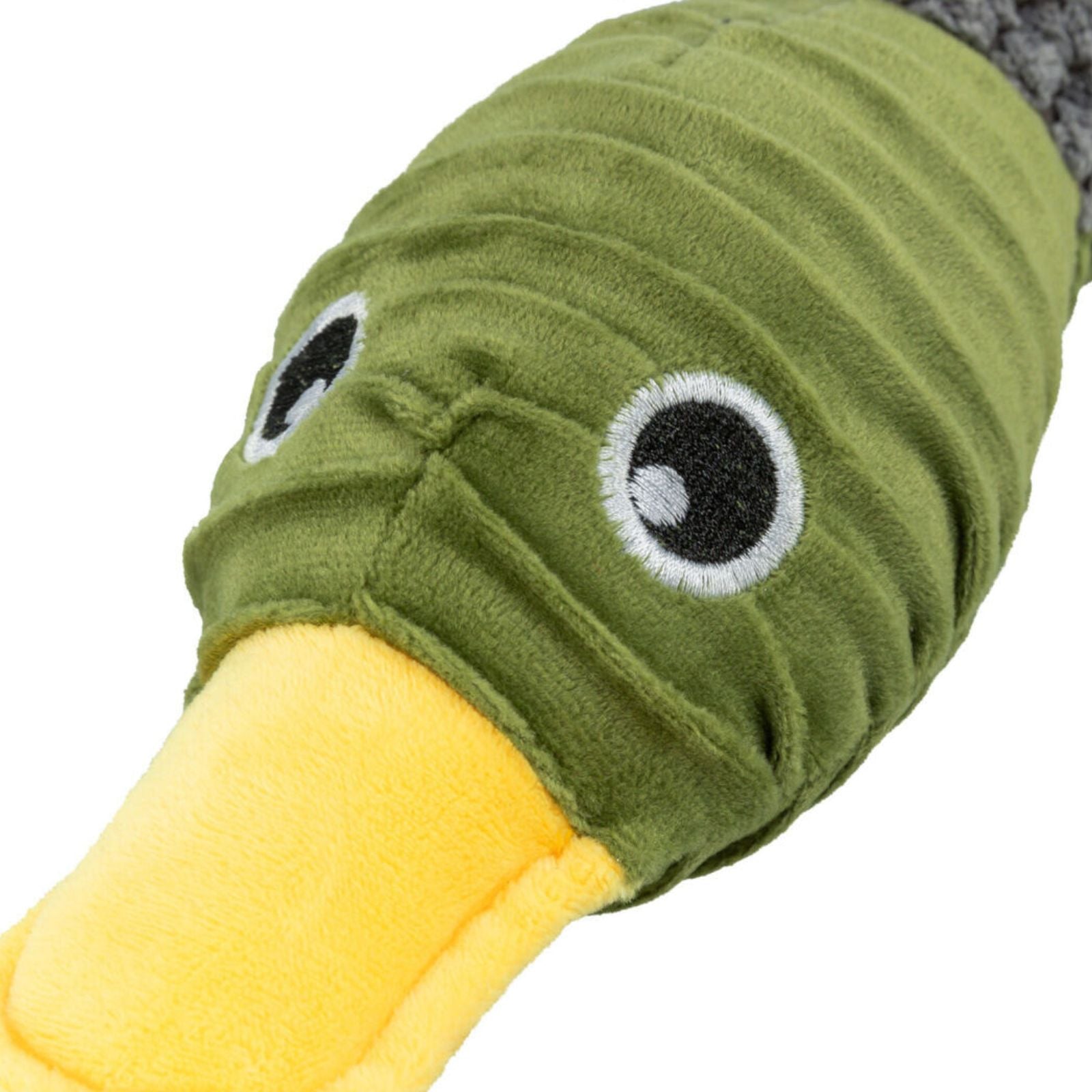Cu un design clasic și o textură moale de pluș, rața este perfectă pentru a stimula instinctul natural de vânător al câinelui tău într-un mod sigur și plăcut. Sunetul interior (squeaker) se activează la fiecare interacțiune, captând instantaneu atenția patrupedului și transformând orice moment plictisitor într-o sesiune de joacă activă.